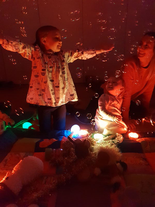 My career took a pause to raise my own 4 children and whilst on maternity leave I began to think of how I could balance work and family life whilst also satisfying my skills set, so Glo-Babies began to really take shape. I devised a programme of music and lights that would mindfully deliver a weekly theme in conjunction with the EYFS with the aim of enhancing the participants development, social skills and early enjoyment of learning. I also wanted to provide an environment that was both calming and created a relaxing ambience for the adults to feel welcome and non self-conscious. Having now run Glo-Babies for several months the feedback from new mums and carers has shown that by creating a chilled atmosphere we have had a positive effect on their mental wellbeing.
